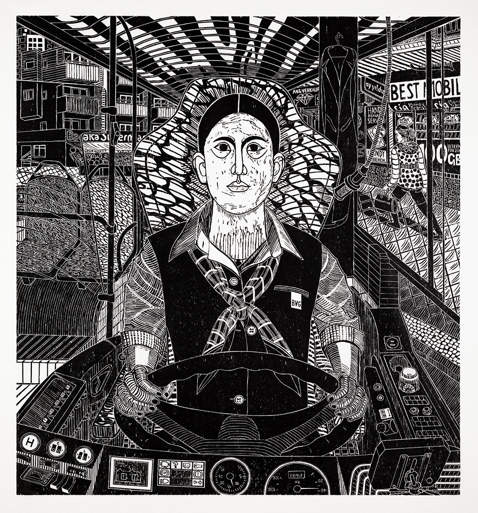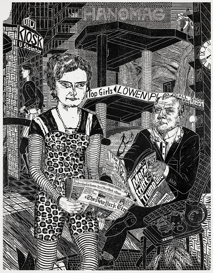 featuring 2 woodcuts by Max Beckmann and a collage by Kurt Schwitters; Woodcut, 120 × 93cm, 2025
